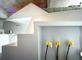 Design of this 49 sqm apartment in Barcelona gets its inspiration from Japanese origami art. One wall which separate all functions of the apartment made with this style in mind and that is enough. When the designer create the wall the apartment already had a shell of simple concrete walls. Some parts of ceiling are still uncovered so futuristic design also has rustic elements.Very the best interior design apartment